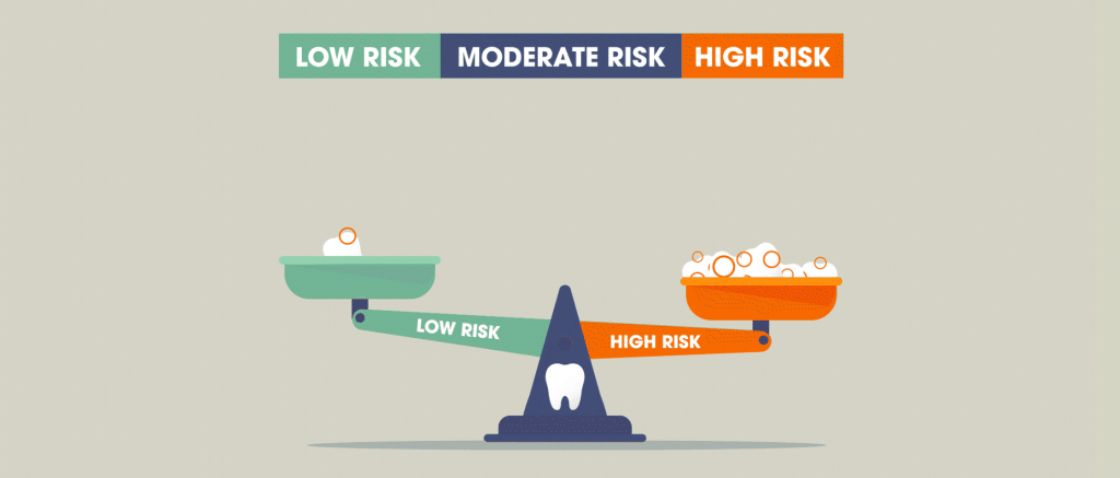 While no one can have zero risk, those with a Low Risk simply need a maintenance routine to stay in the low risk range. This will include continuing good oral hygiene at home, seeing your dentist on a consistent basis, watching your diet and managing any dry mouth issues that arise.