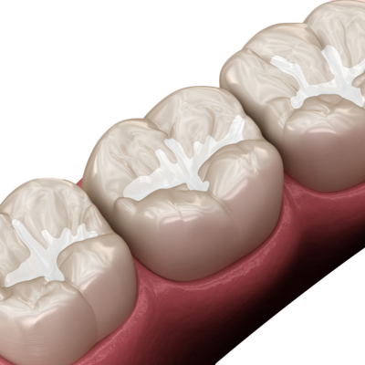 Dental sealants are thin, protective coatings applied to the chewing surfaces of teeth, especially the back molars. They fill in deep grooves and pits where food and plaque often collect, making teeth easier to clean and helping prevent cavities before they start.